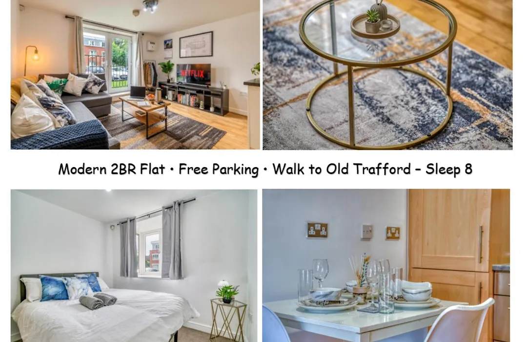 Modern 2Br Apartment With Free Parking Sleeps 8 Walk To Old Trafford Manchester
